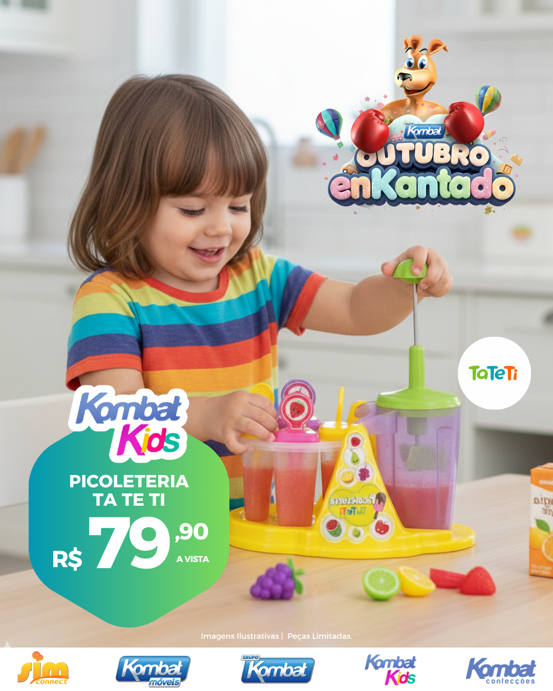Grupo Kombat é formado por lojas de eletrodomésticos, esporte e brinquedos, telefonia, informática, móveis, confecções do infantil ao adulto, enxoval completo e provedor de internet fibra óptica;