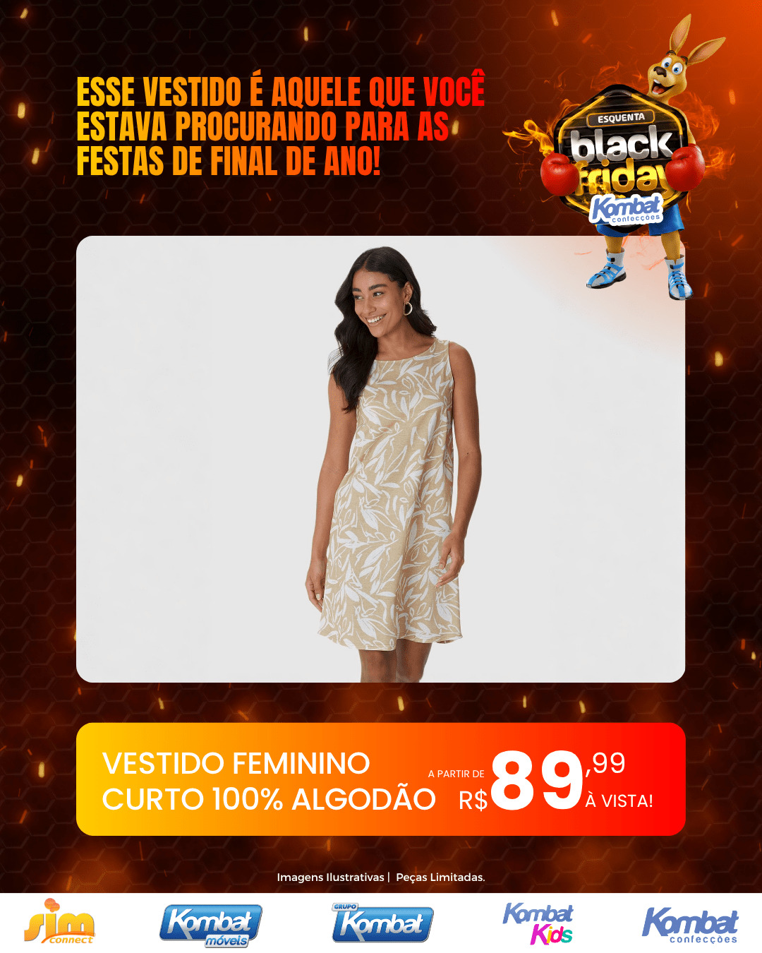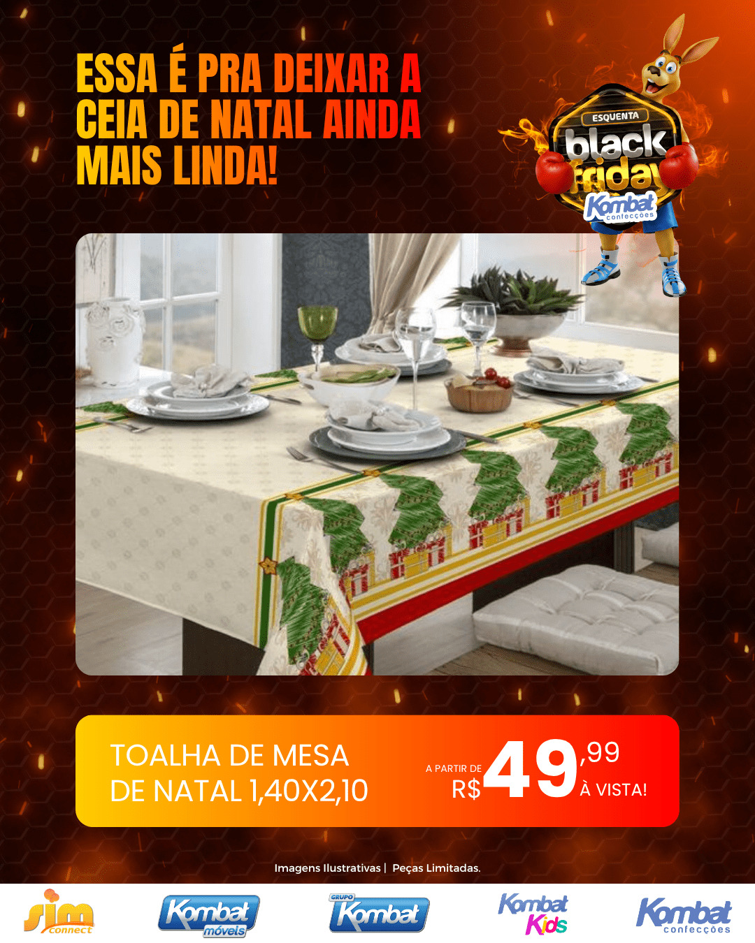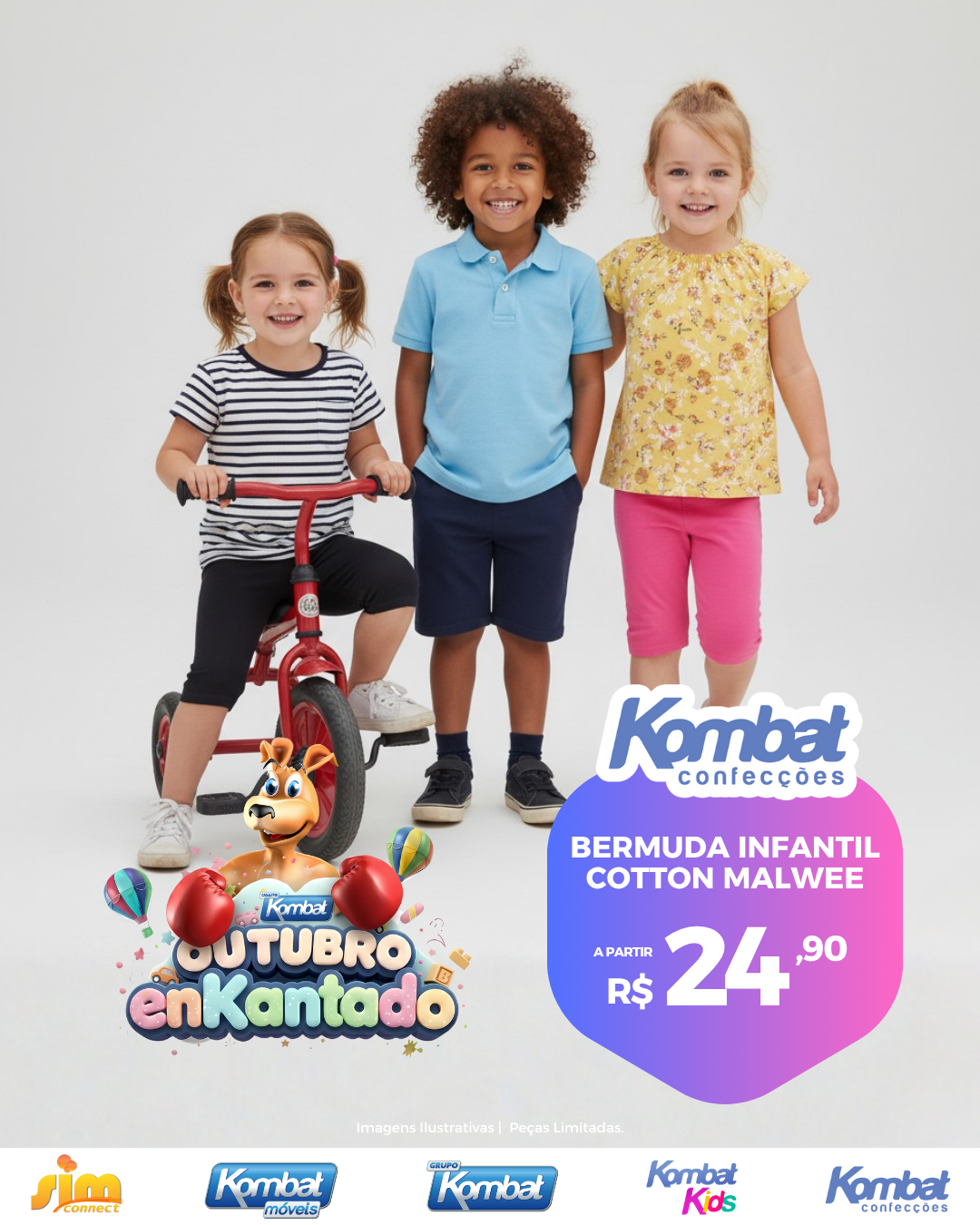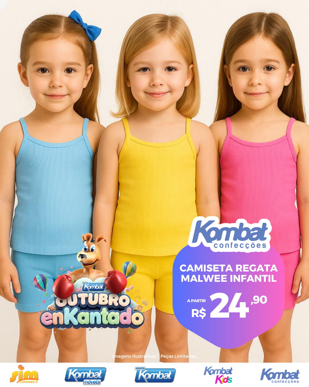 Na Kombat Confecções você encontra roupas para todas as idades, cama, mesa e banho, com promoções diárias. Parcelamento em até 18x no cartão ou crediário próprio, com atendimento especializado para ajudar na escolha do look ou presente ideal.
